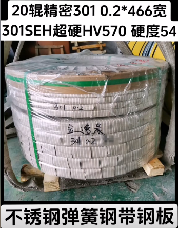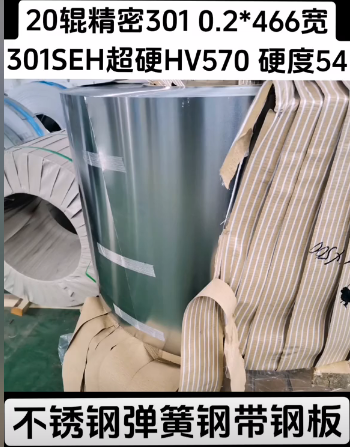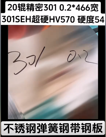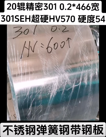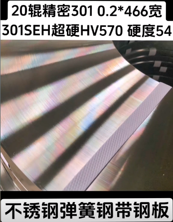 寶新3010.2*466寬,HV570左右, HRC 硬度54左右。此款屬301SEH不銹鋼彈簧鋼帶。板面無色差2D表面,有光澤無劃傷。材料經過拉矯平整。100KG起分條,100KG起定長開平板。