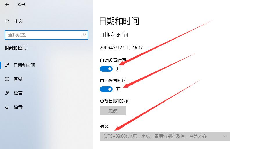 3、如下圖,自動設(shè)置時間和日期和自動設(shè)置時區(qū)要選擇開,時區(qū)一定要選:(UTC+08:00)北京,重慶,香港特別行政區(qū),烏魯木齊。