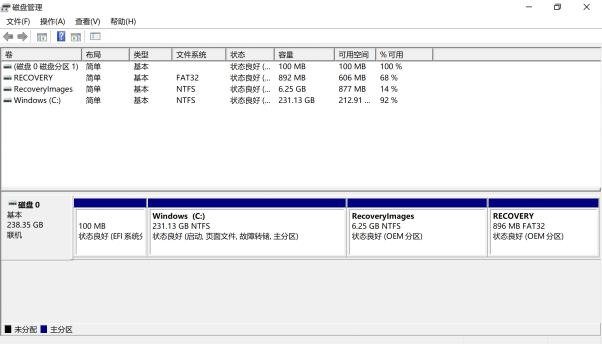 壹號本原廠自帶系統(tǒng)一鍵還原功能,不是Windows系統(tǒng)自帶還原功能,256G分區(qū) 信息如下圖