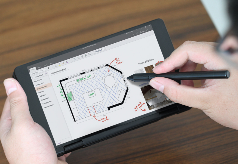 它支持360度變形翻轉,實現(xiàn)了筆記本電腦和平板之間的自由切換。工作時調整為筆記本狀態(tài),悠然自得不費力;休閑娛樂時調整為平板模式,擁抱美麗好心情。原跡手寫筆用來即時批注、隨筆畫畫、記事等,小巧輕便。更有持久續(xù)航能力,讓你在出差、旅游途中無需擔心電量不足問題,配有移動電源,快速充電,更是你商務辦公的好伙伴、好搭檔。