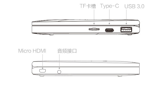 壹號(hào)本機(jī)身上配置有micro HDMI接口、音頻接口、USB3.0接口,
