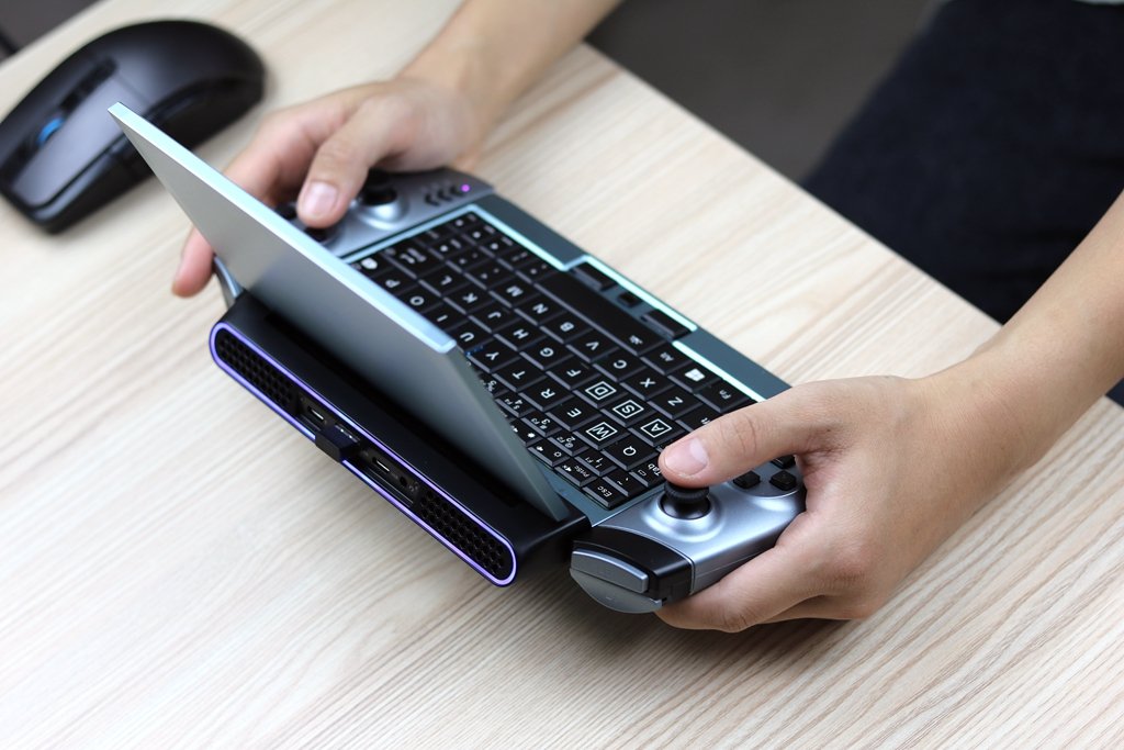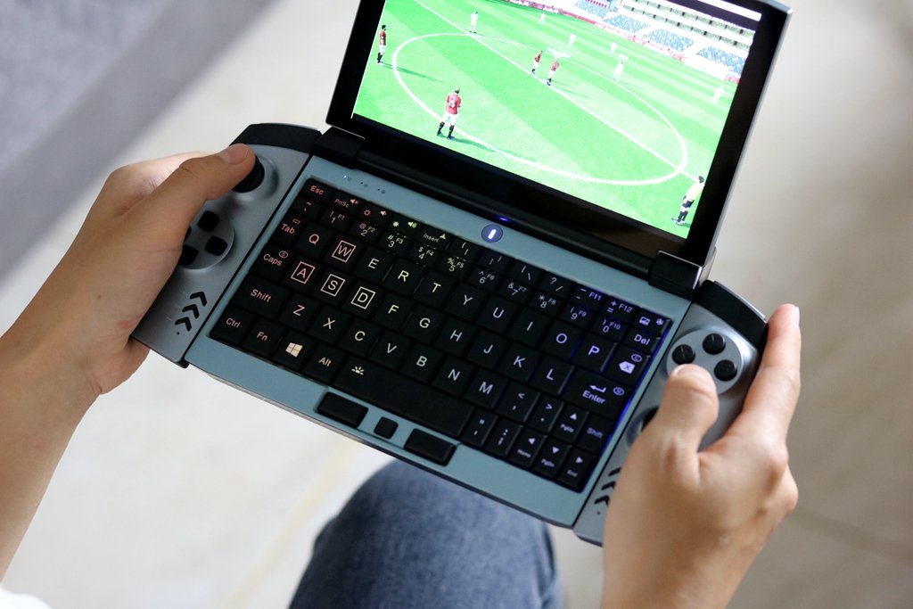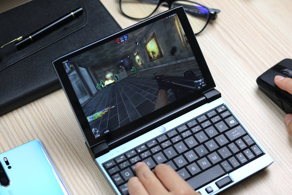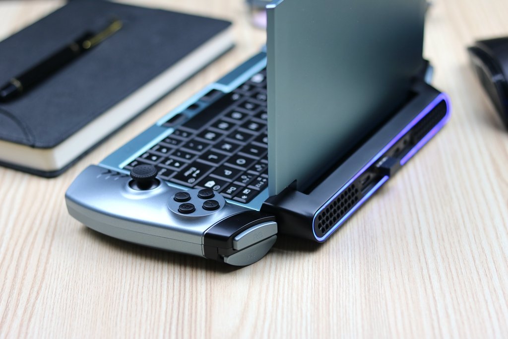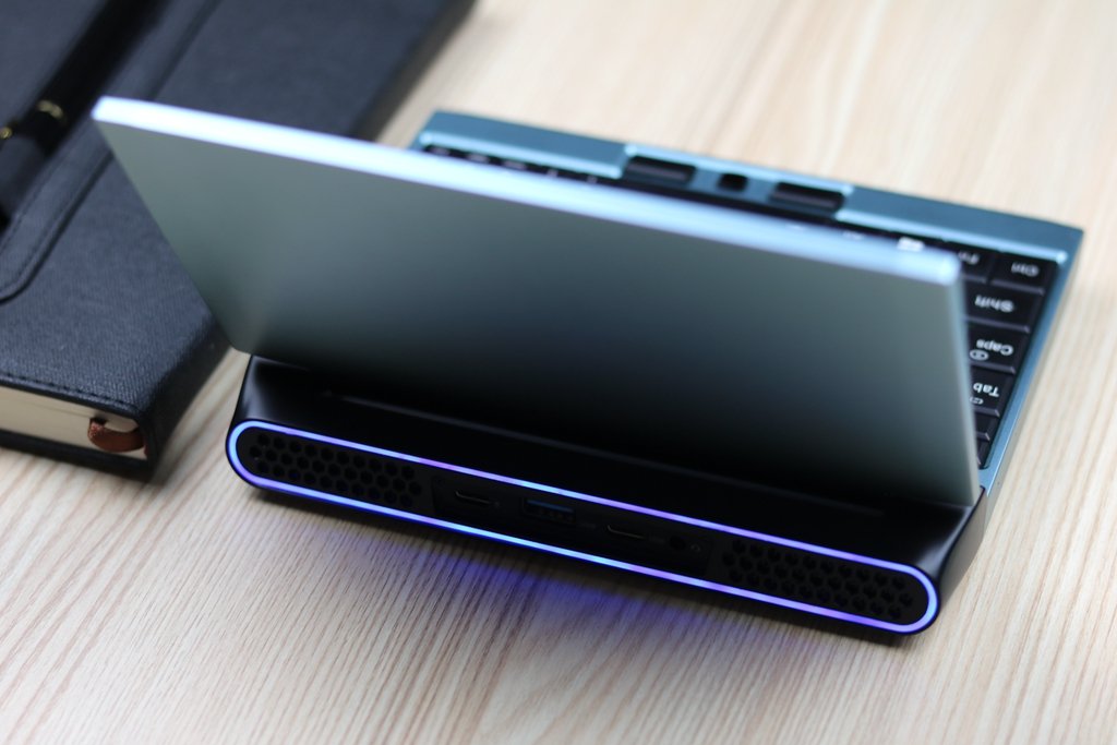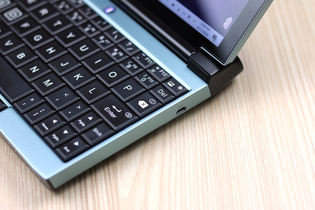 從外觀上看,One-Gx1機(jī)身小巧迷你,僅7寸大小,也就相當(dāng)于一個大屏手機(jī),可以輕松的裝進(jìn)手包、口袋里面攜帶。機(jī)身采用了藍(lán)色面板+黑色轉(zhuǎn)軸配色,用6000系列航空鋁材打造,并通過CNC精雕工藝一體成型,不僅摸上去很有質(zhì)感,視覺方面也很時尚。