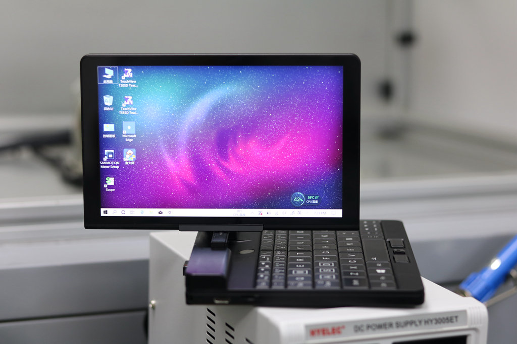 壹號工程師PC只有7英寸大小,0.55kg,可以看到僅比手機尺寸大一點點,可以輕松的裝進背包、口袋里面攜帶。帶著它去客戶現(xiàn)場調(diào)機真的很輕松,不需要帶轉(zhuǎn)接頭、不需要帶鼠標,跟之前相比完全是兩種出差體驗。