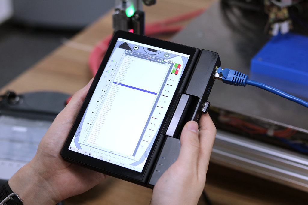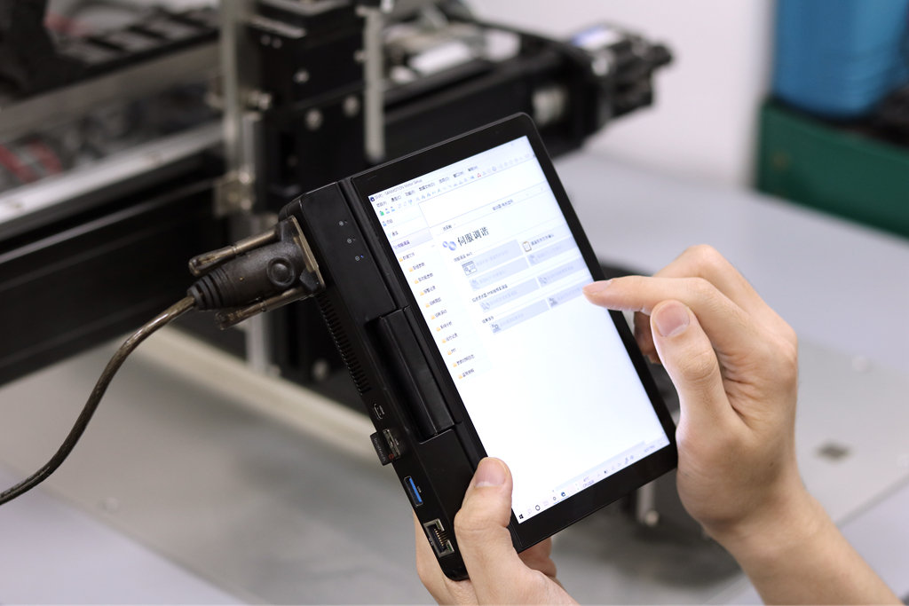 在一些空間狹小、場地尺寸有限的場合,調(diào)試機器的時候也可以直接用手指觸控屏幕,控制軟件的運行,完全擺脫了鼠標的束縛。一手托著迷你的筆記本,另一只就能靈活的進行調(diào)機操作了,十分方便。