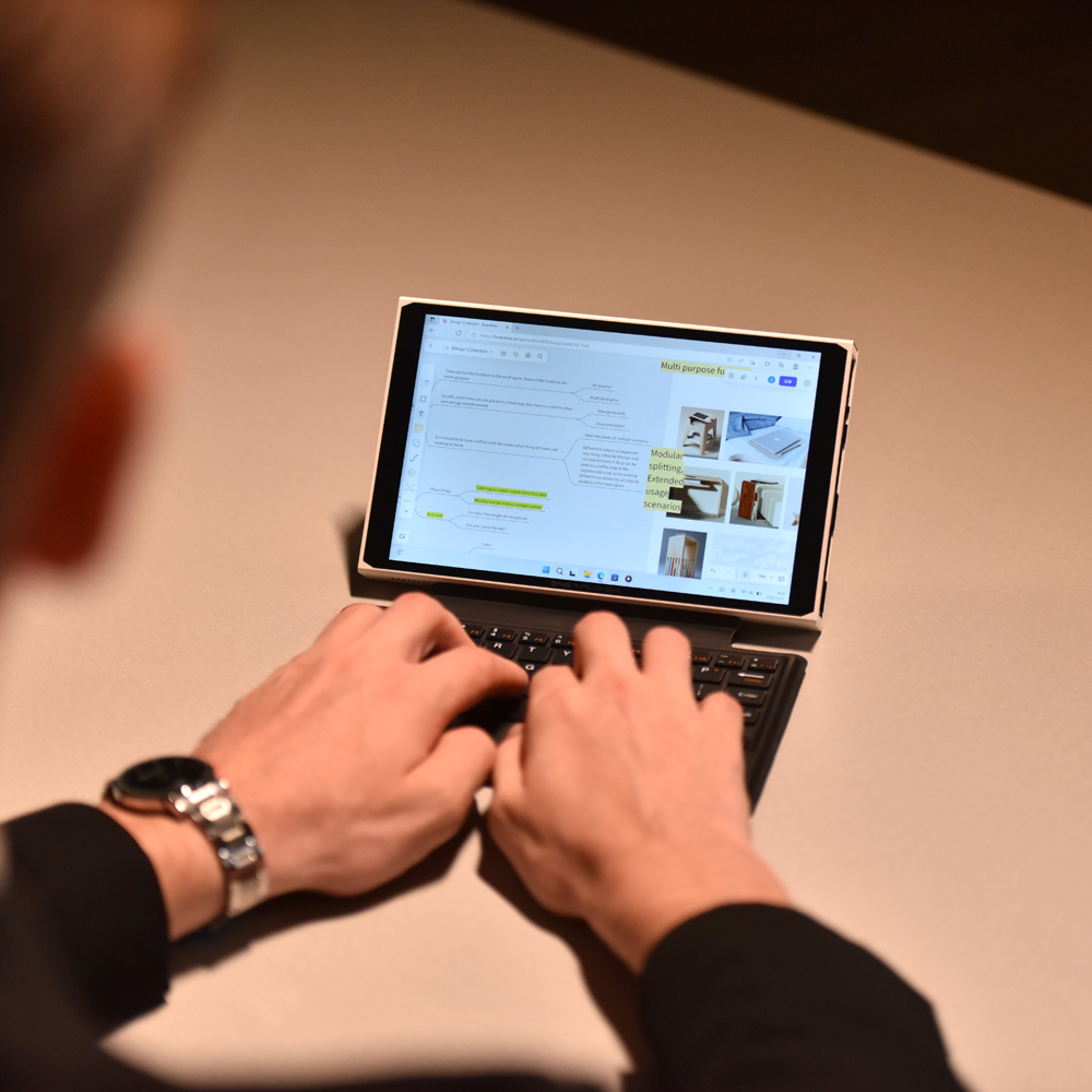 打開機器背部的隱藏式支架,搭配定制磁吸鍵盤,你還可以把OneXPlayer 2作為一臺mini筆記本電腦使用。