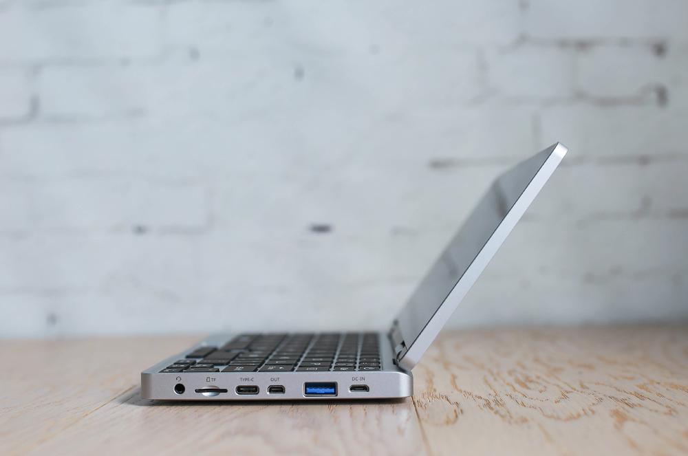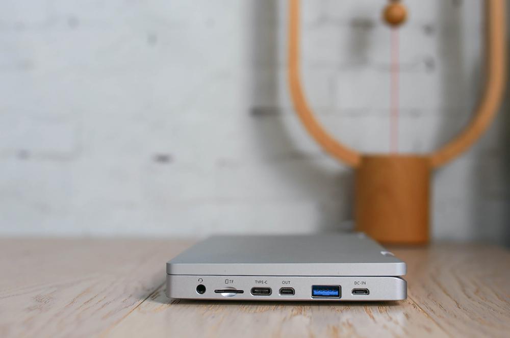 在右側(cè)上提供了豐富接口,壹號(hào)本設(shè)有USB 3.0接口、3.5mm音頻接口、TF卡槽以及TYPE-C接口、OUT接口和DC-IN電源接口,值得一提的是壹號(hào)本支持5V移動(dòng)電源充電。